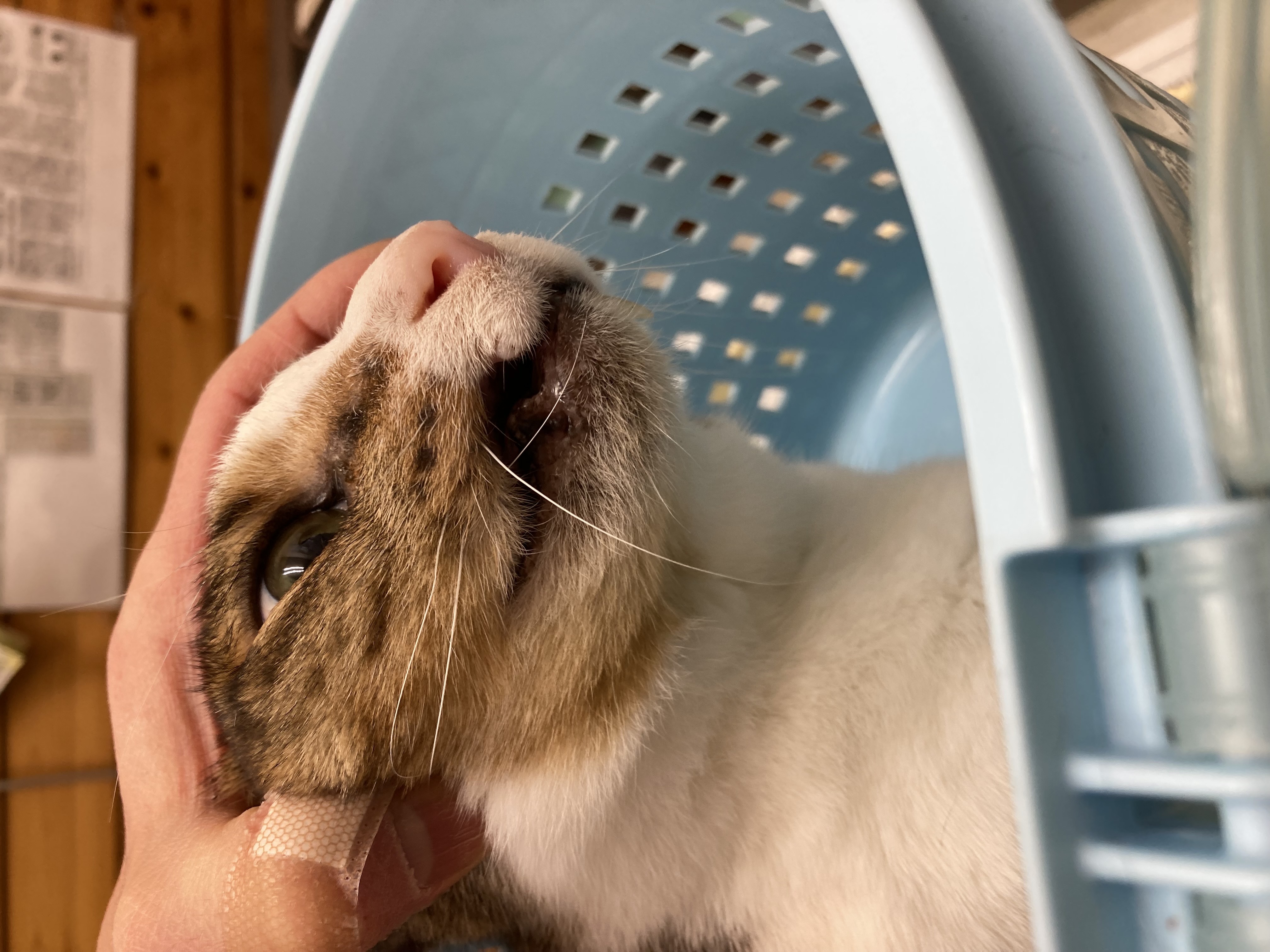 抜歯処置を行なった翌日から食欲が回復し、体重ば減らなくなりました。慢性腎不全用の処方食のキャットフードのみで飼育することで、呼気の尿毒症物質が目立たなくなり、元気も回復しました。壊死した皮膚のえぐれは少し残っていますが、本人は苦痛を感じなくなって快適そうです。処置後1ヶ月のいまは毛ヅヤも回復し健康的になっています。