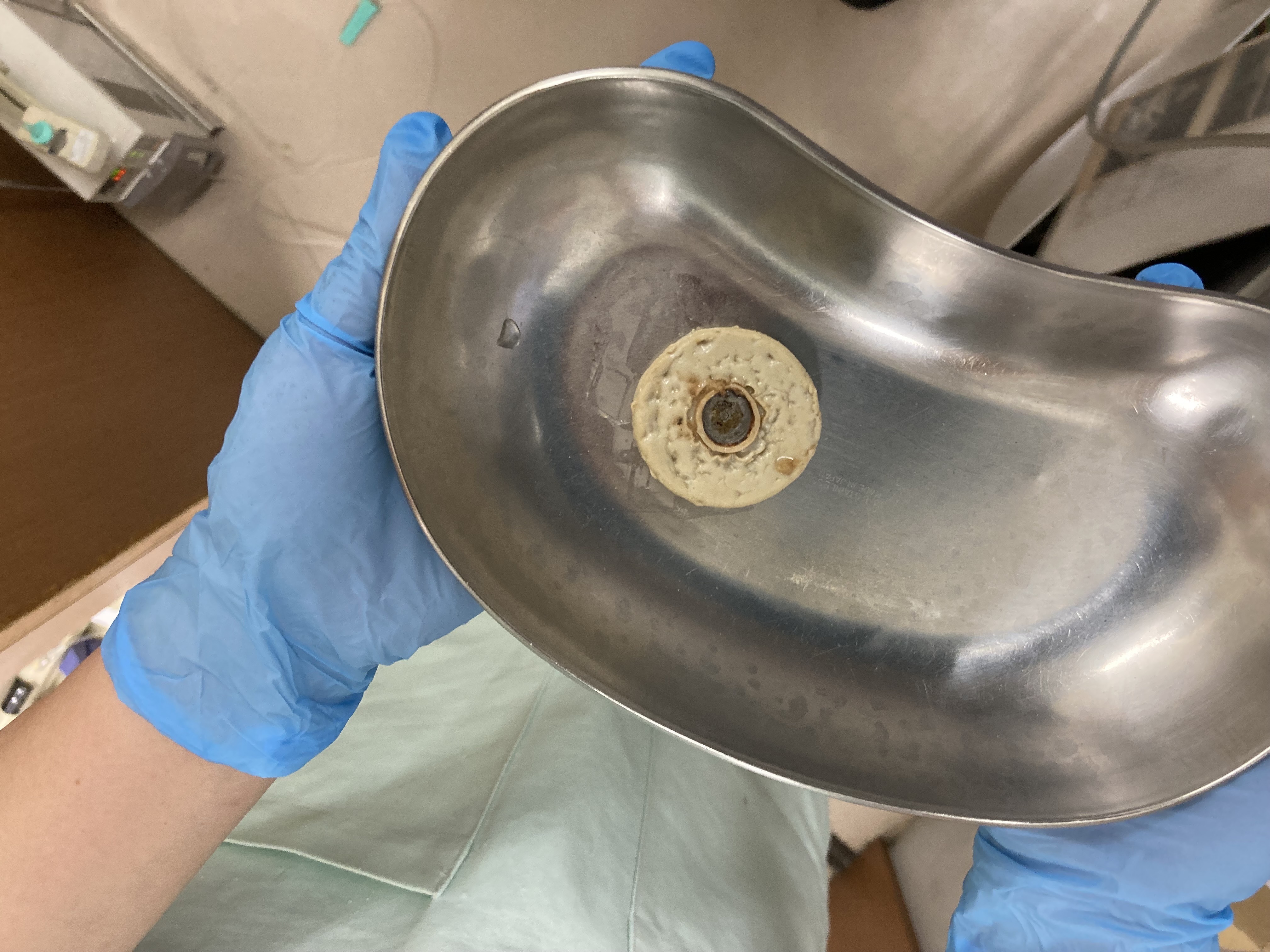 内視鏡処置で無事摘出できたため、開腹手術をしないで済みました。水回りの何かの部品だった様です。直径3cm程度の丸い薄いものだったため、飲み込めたけれども、吐出はできなかった様です。放置すれば、腸で詰まっていた可能性があります。