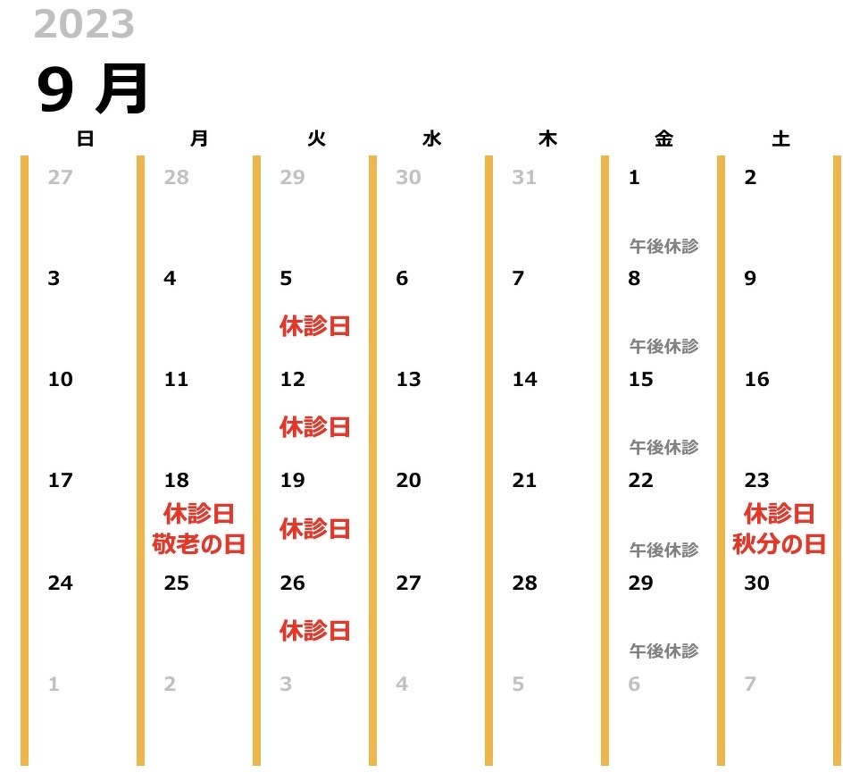 |  | 月 | 火 | 水 | 木 | 金 | 土 | 日 | 祝日 |